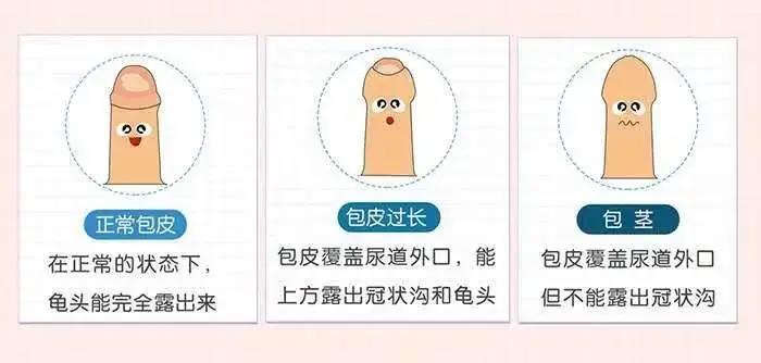小丁丁都可能长啥样? 包皮过长:指包皮完全覆盖阴茎头及尿道口,但很容易就能翻开,完全显露阴茎头。外观看起来,就像阴茎穿了个“高领毛衣”。 包茎:指包皮口太狭小,或包皮与阴茎头粘连,把丁丁全身包裹得严严实实,没法翻转到冠状沟以上。可以理解成阴茎头穿了颈口很小的毛衣,小得阴茎头根本无法穿进去。