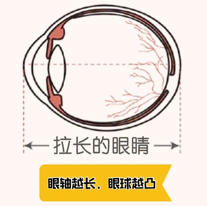 “所以,感觉眼睛变凸不是因为戴眼镜引起的,而是近视度数加深,眼轴变长导致的。”张永强主任表示,高度近视的眼轴一般长于26毫米,伴随眼轴进行性延长的是视网膜的持续变薄,未来发生视网膜脱离、黄斑变性的几率增大。