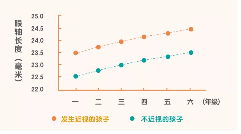 眼轴长度指眼球从前到后的长度。小宝宝从出生到长大,身高会增长,眼轴也会增长。婴儿时期的眼轴长度在20毫米左右,6岁时达到约22毫米,成年时约24毫米,眼轴增长是一个非线性的增长过程。