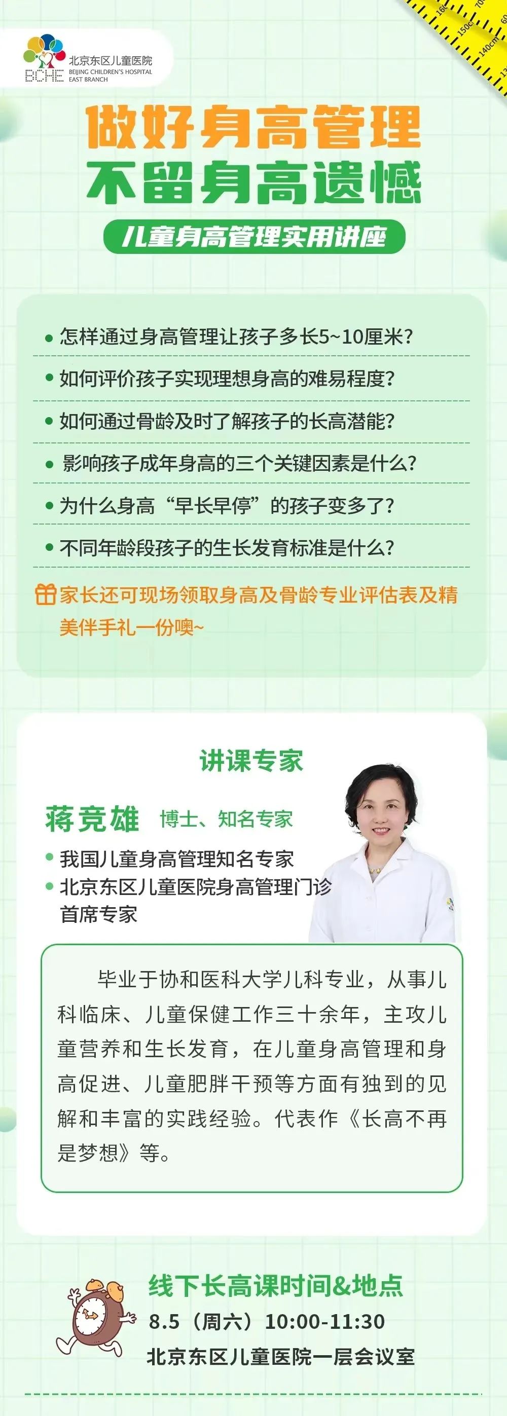 在蒋老师团队管理的家庭中,什么年龄的孩子都有,有些是遗传身高不高,家长担心孩子长不高,从学前就开始管理;有些是快进入青春期了,但是孩子比同龄矮一大截,因为焦虑而开始管理;还有些是因为孩子肥胖,为了控制体重,通过身高管理,不仅减了体重,还长高了不少!目前,蒋竞雄博士已为近万名孩子设计长高方案,助孩子达成理想身高!