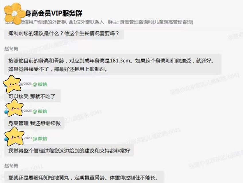 孩子妈妈曾和赵医生说:“我们全家对孩子的身高问题都很重视,我把星星的管理方案发到了家庭群里,并时不时地分享一些我从咱们医院这边获取的知识,家里老人虽然也宠孩子,但是在身高这件事上都高度配合,不给孩子买零食,也从来不强制孩子要吃多少饭。而且孩子奶奶和姥姥这边还觉得有了方案更省事儿了,不再因为孩子不好好吃饭而焦虑,不上幼儿园在家吃饭的时候也不再追着孩子喂饭了,老人觉得好轻松。而且即使不看数据,也明显看到了孩子这一年长高了不少,全家人都很高兴,也表扬孩子做的好。”
