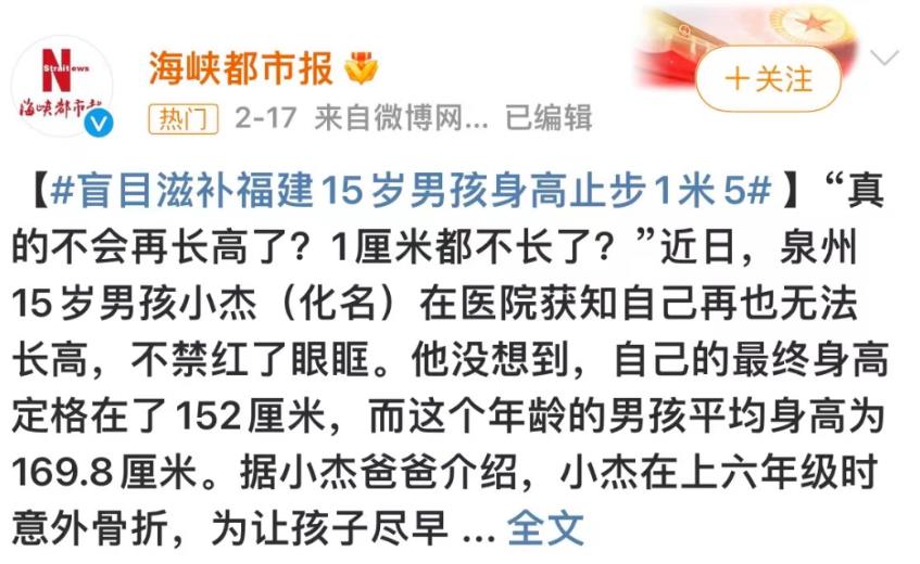 有不少家长表示,现在的孩子普遍偏高,有的孩子看着遗传身高明显不高,但是却比同龄人高不少。这种情况也未必是好事儿,网上经常有这样的新闻,某小孩很早就进入青春期,但家长没有及时发现,等到不再长高去看医生,才发现孩子由于性早熟,骨骺早已闭合,再也无法长高了,最终身高只能止步1米5。