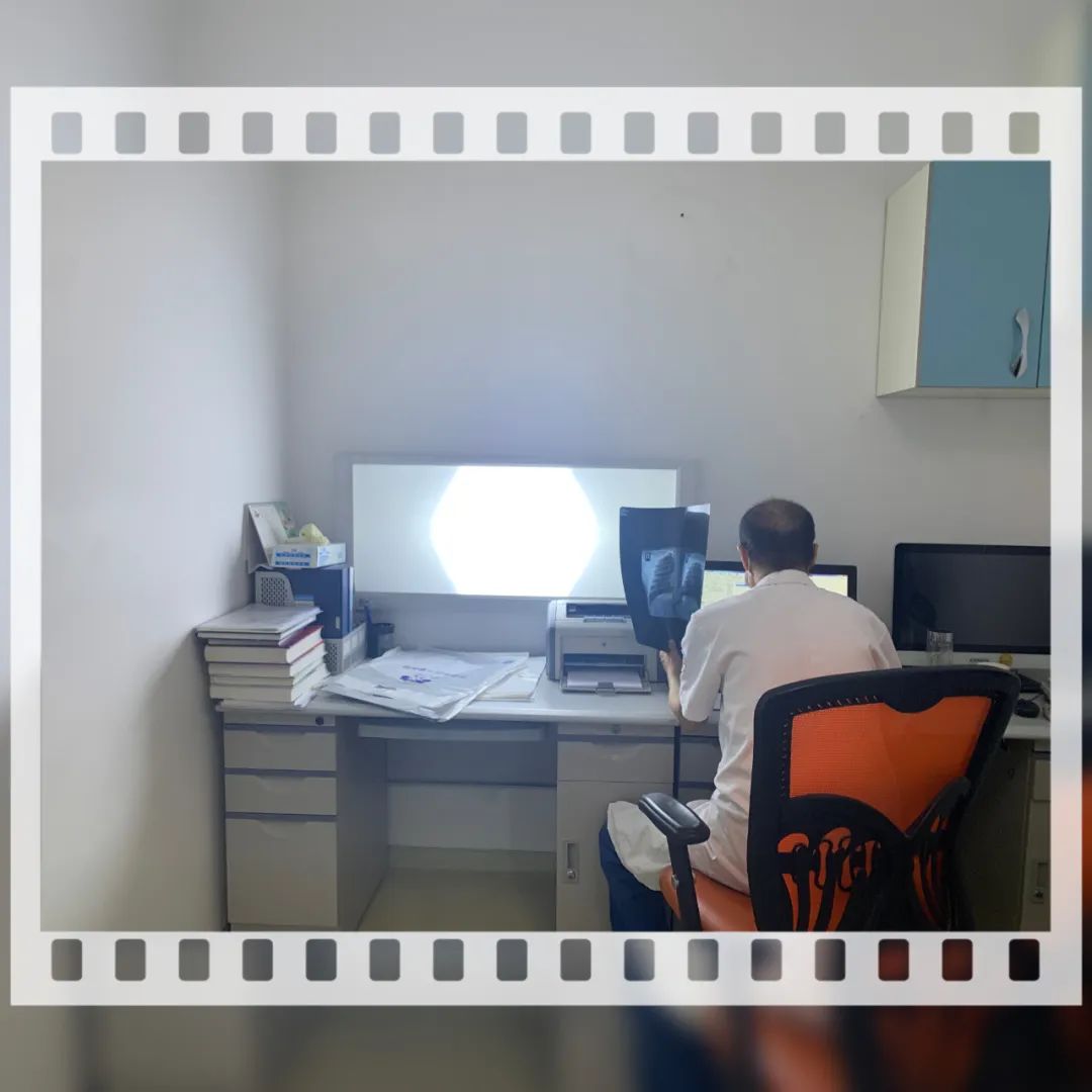 放射科吴老师认真地复核胸片
