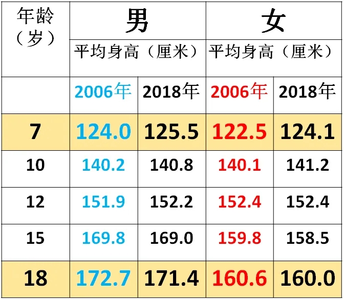 7 岁以后的孩子,可以参考2018年国家卫健委发布的《7-18岁儿童青少年身高发育等级评价》的数据。