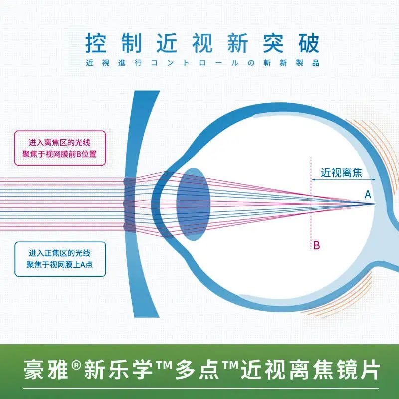 多点近视离焦镜片是一款帮助减缓青少年近视度数增长的新型眼镜镜片。临床试验证实,该镜片具有可靠的近视控制效果。儿童青少年近视配戴该镜片后,通过近视离焦原理,可有效减缓眼轴增长和近视度数加深,有效率达50%左右。