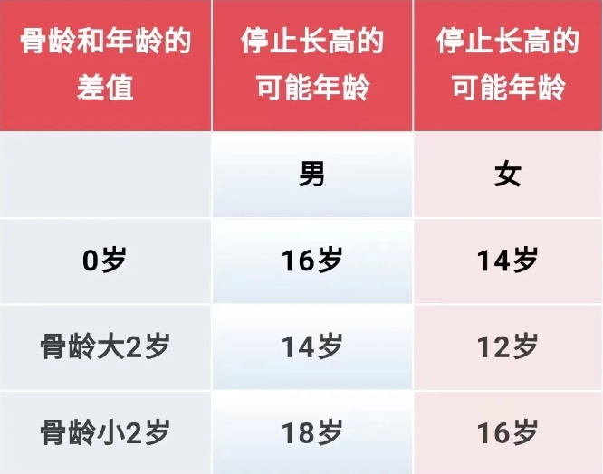 男孩约骨龄16岁,女孩约骨龄14岁,骨骺线闭合,身高停止增长。