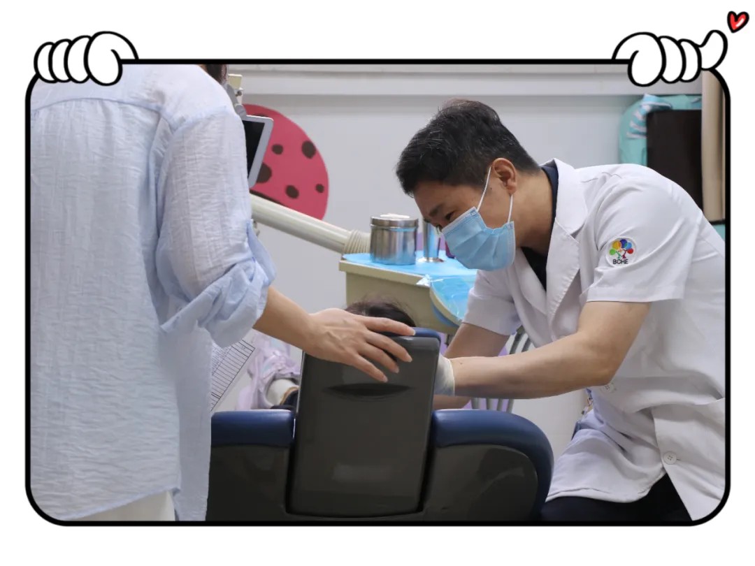 口腔舒适化诊疗中心主任 周杰医生为孩子检查牙齿问题