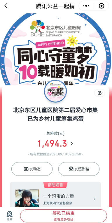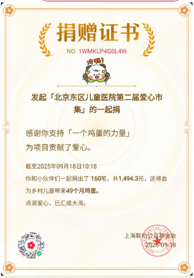 luck新利非常感谢家长和孩子们的积极参与,在大朋友和小朋友们的努力下,9月13日至14日共筹集善款1494.3元,这将会为一个乡村儿童带来49个月鸡蛋。