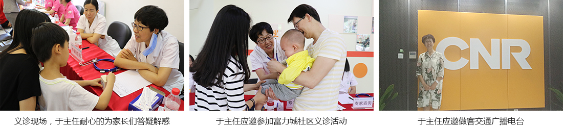 专家风采做好本职工作外,于连红主任多次应邀参加周边社区举办的大型义诊活动,为广大儿童免费进行专家义诊、咨询活动。其认真细致、专业热情的服务态度,赢得了社区居民的高度好评。