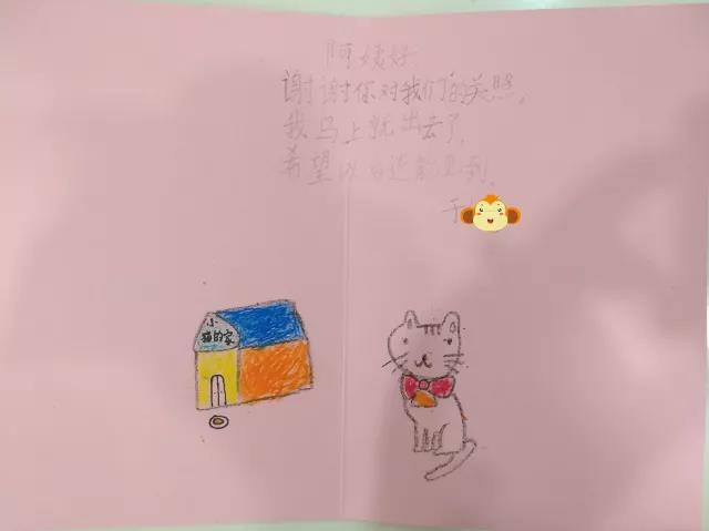 出院时,让人感到惊喜的是,原来性格内向的佳佳竟然悄悄地托爸爸妈妈买来了贺卡,佳佳亲手在贺卡上写下自己对护士姐姐的感谢,还画上了自己喜欢的小猫咪。